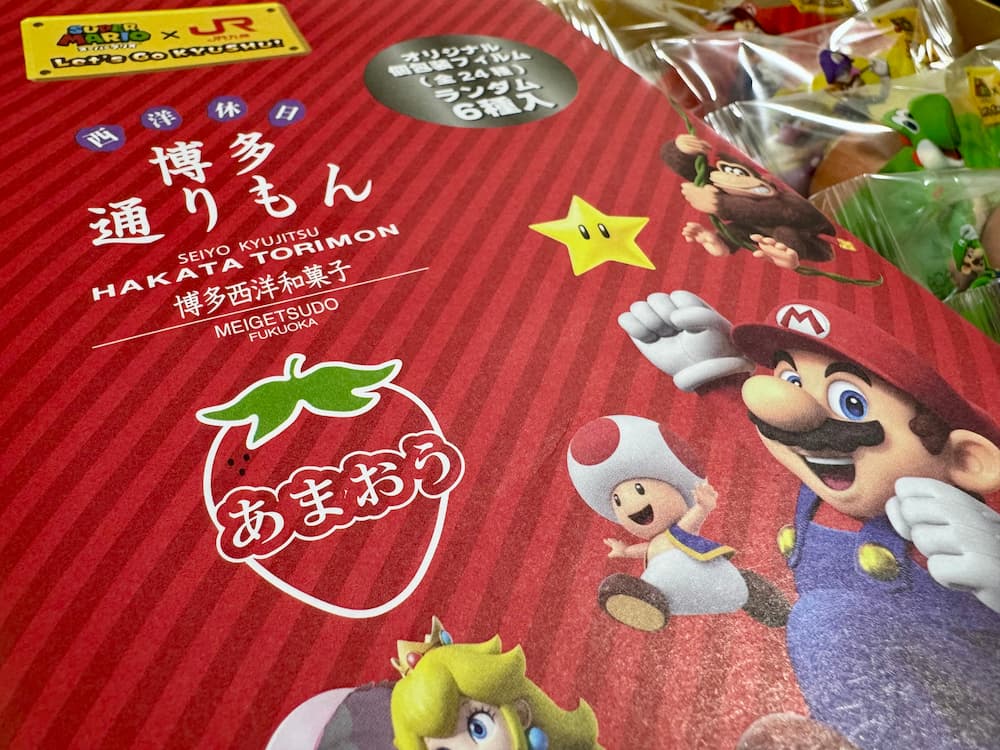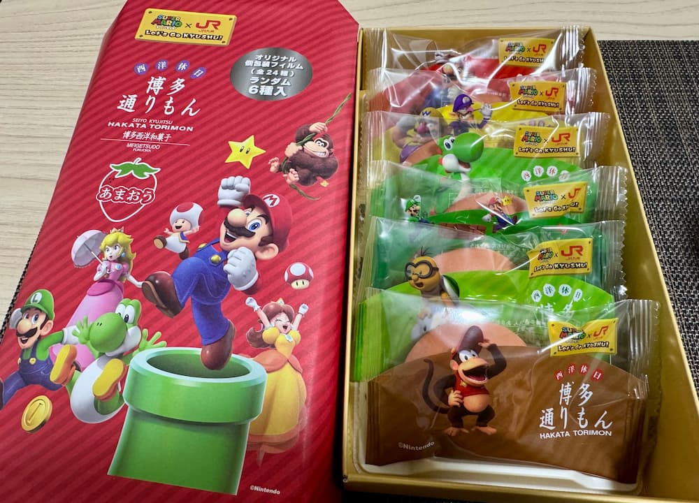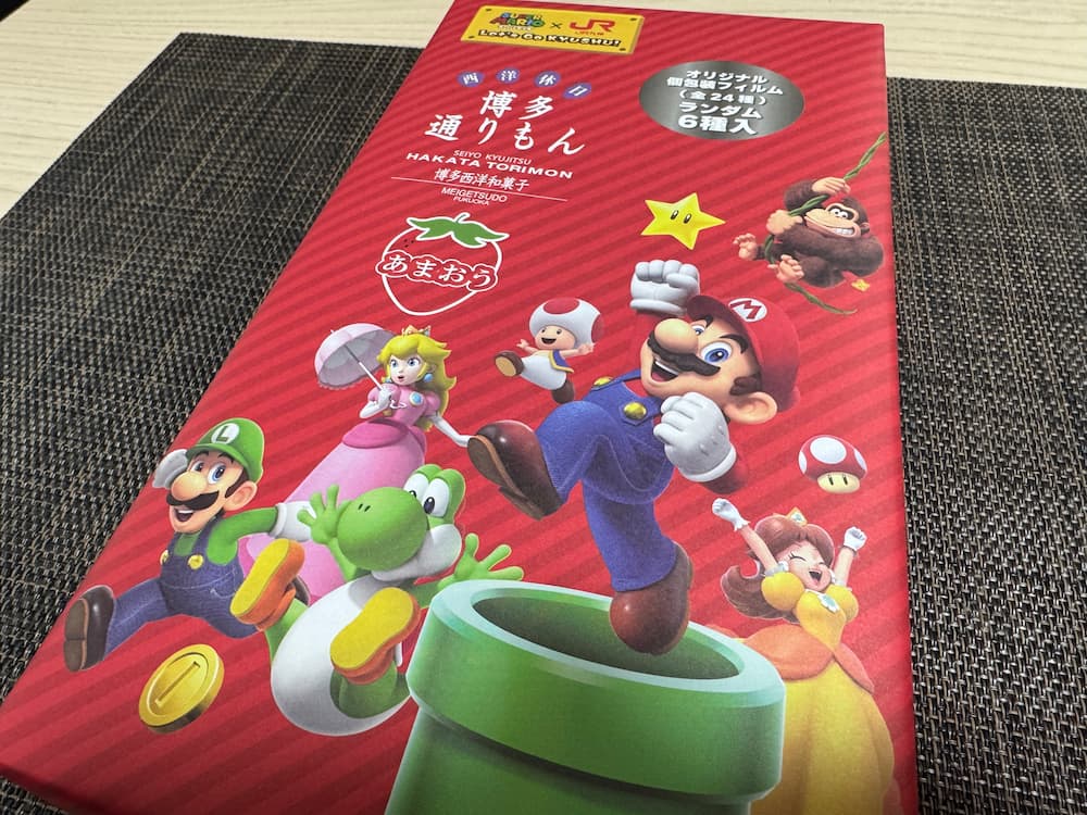 2025年博多駅ビルのアミュプラザに九州初の任天堂ストアがオープンしてから博多駅を中心に九州各地でJR九州の企画によりスーパーマリオとのコラボが行われています。その第2弾として、発売されたのがスーパーマリオとJR九州コラボの博多通りもんあまおう味です!!